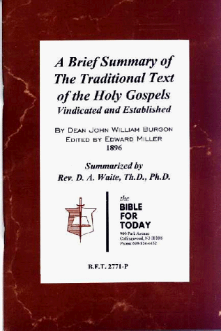 As the title indicates, it is the purpose and intention of this booklet to summarize some of the teachings and main arguments contained in Dean Burgon's excellent book, The Traditional Text of the Holy Gospels. It is hoped that the reader will purchase and read `The Traditional Text in its entirety.